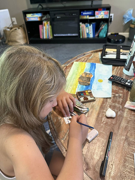 In a sense, Kristal is part artist and part micro-curator. She creates her own art for the gallery, whether it’s miniature canvases, painted rocks, or jewelry. But she also encourages neighbors to create their own art to leave behind. And the neighborhood artists span generations.